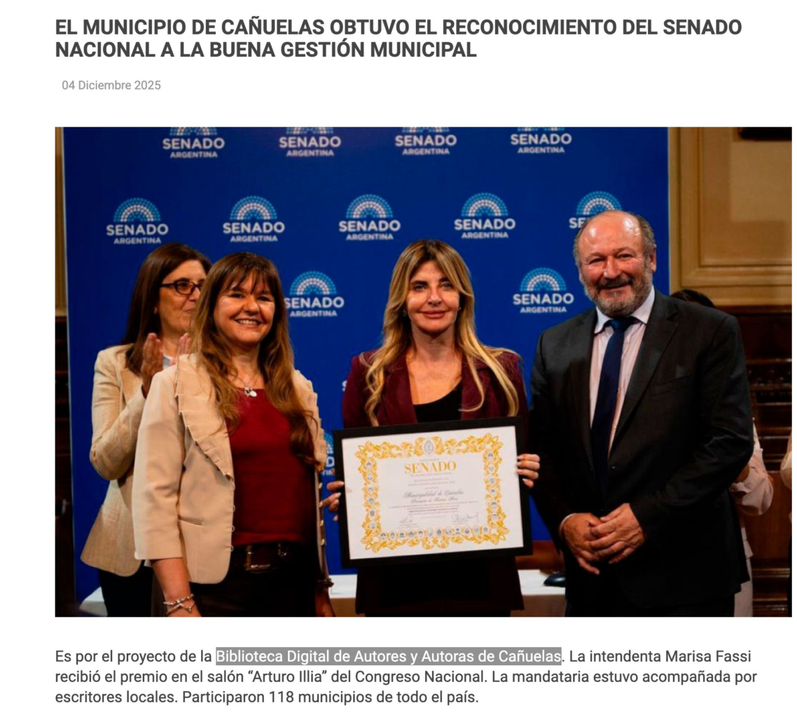 Cañuelas. Pero no por cualquier cosa. Lo ganó justamente por la “Biblioteca de autores y autoras e Cañuelas”(link)