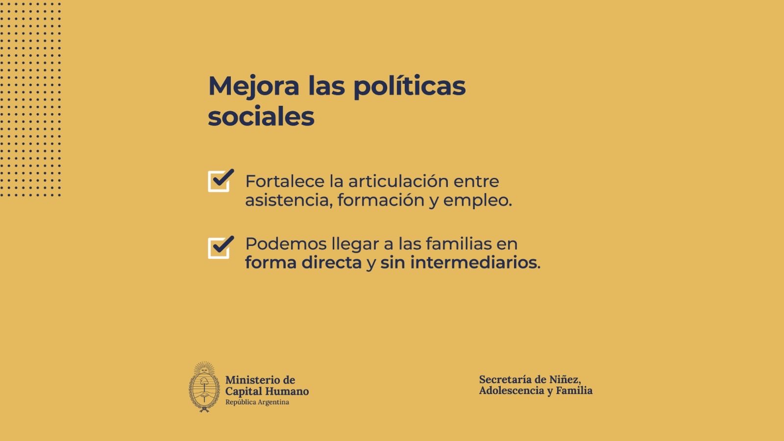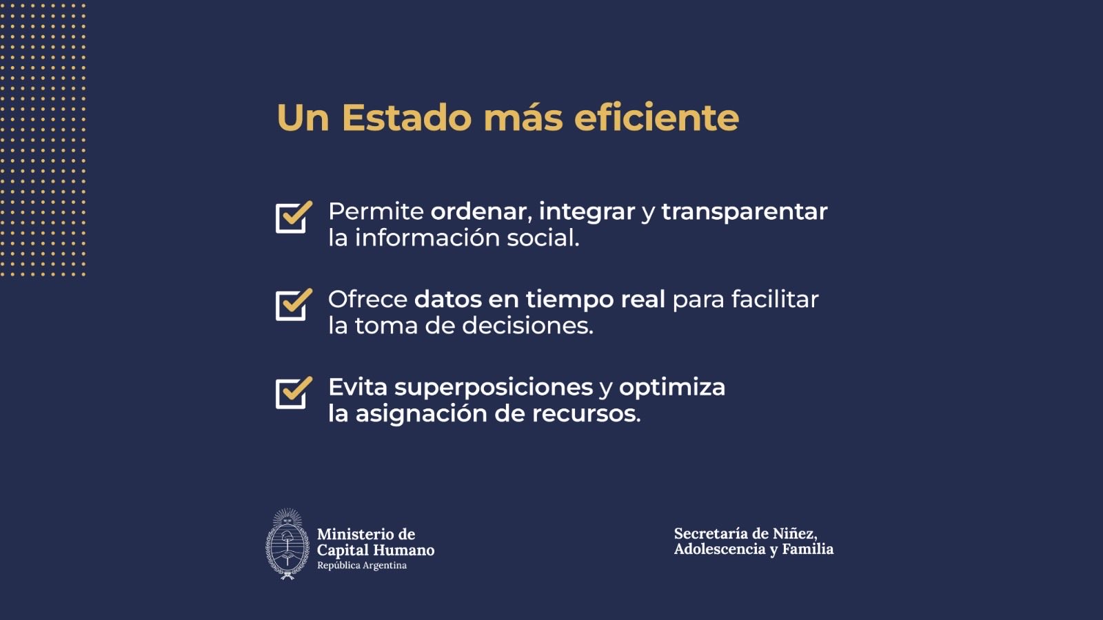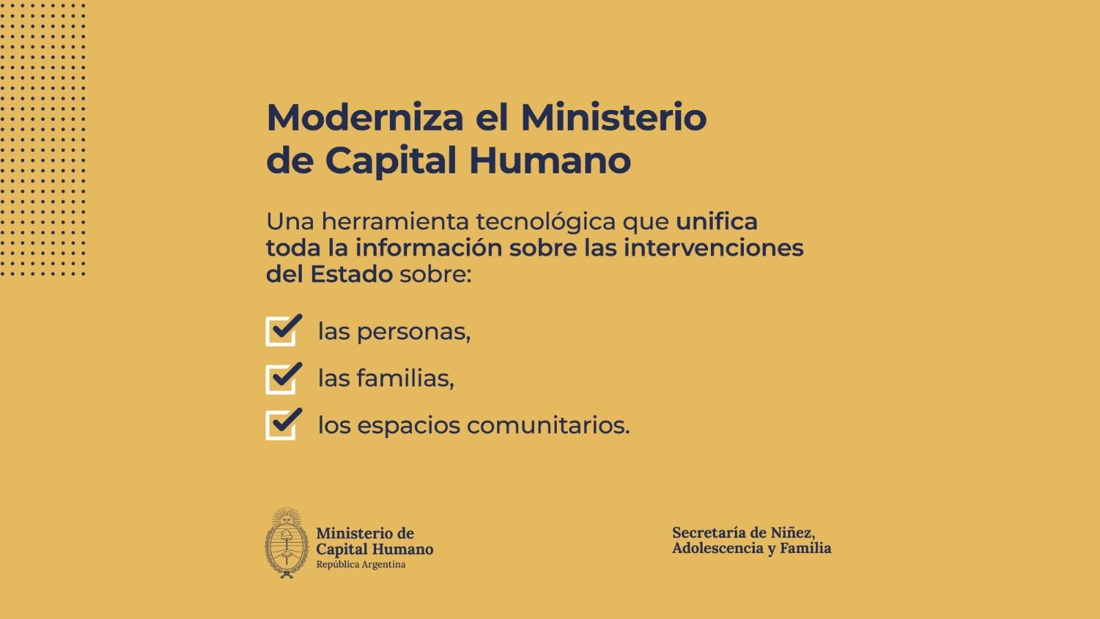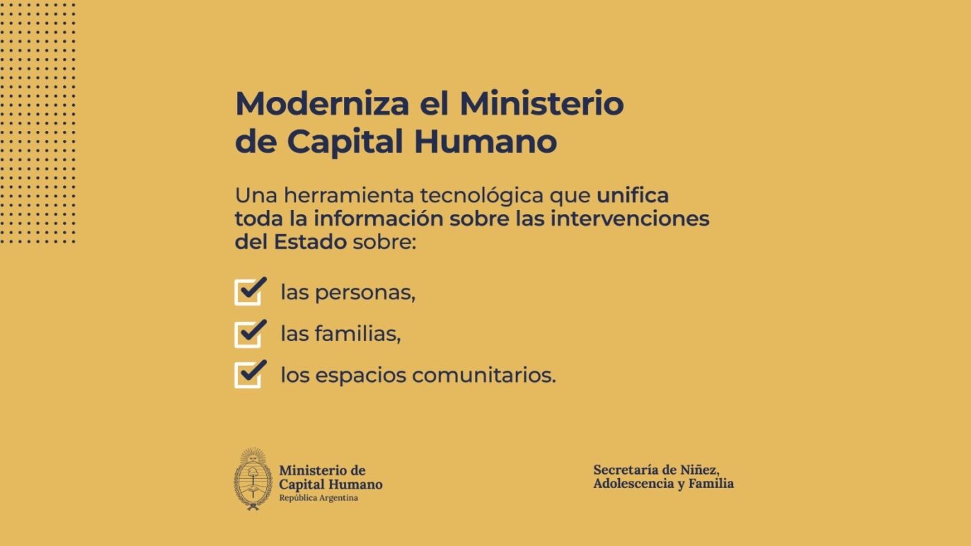 El anuncio oficial está acompañado por cuatro infografías del Ministerio de Capital Humano – Secretaría de Niñez, Adolescencia y Familia, que detallan los objetivos de la nueva plataforma.
