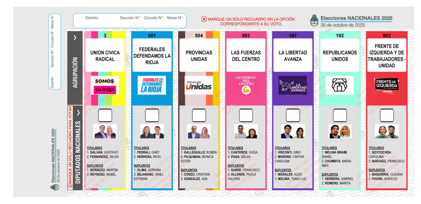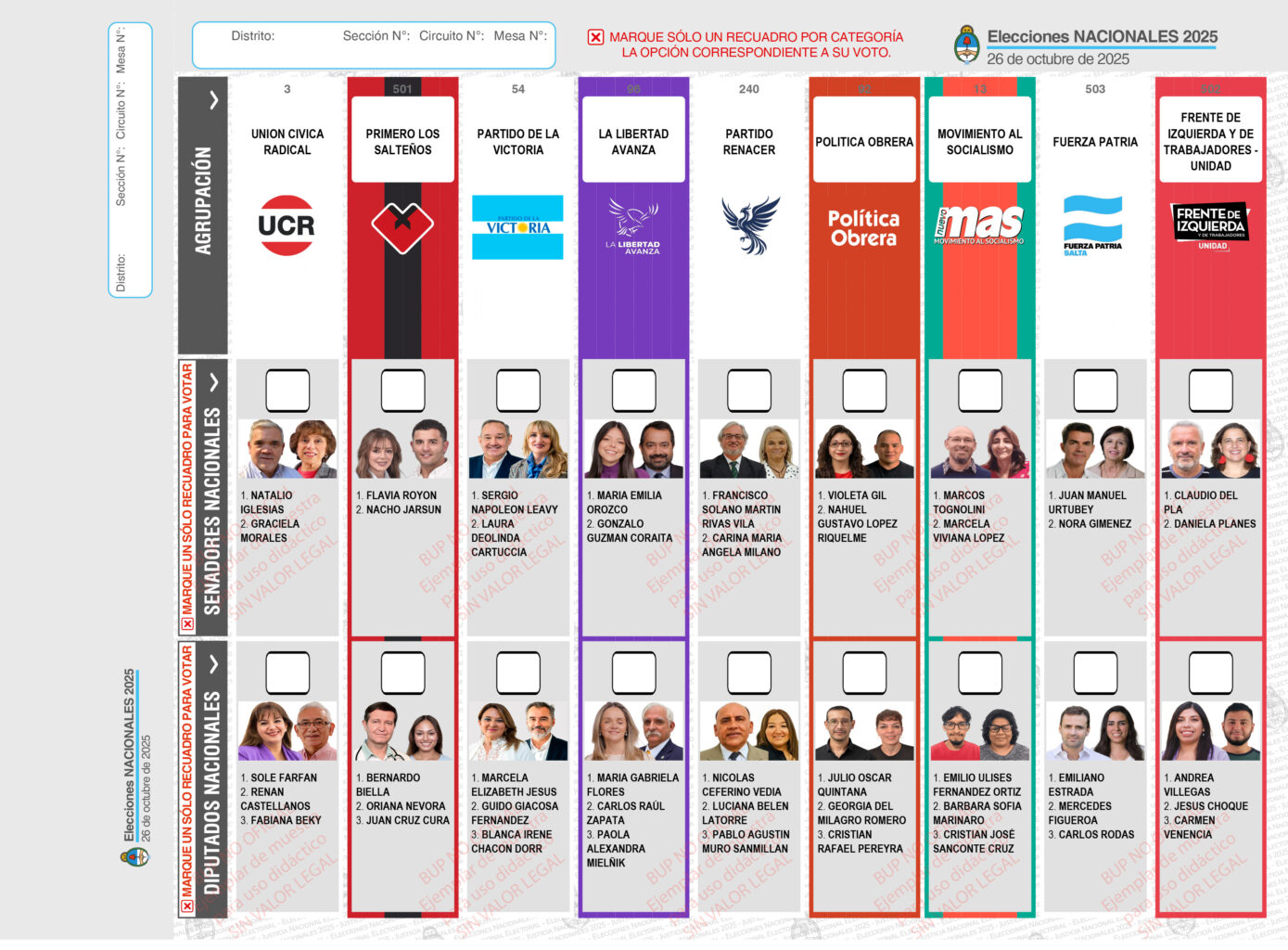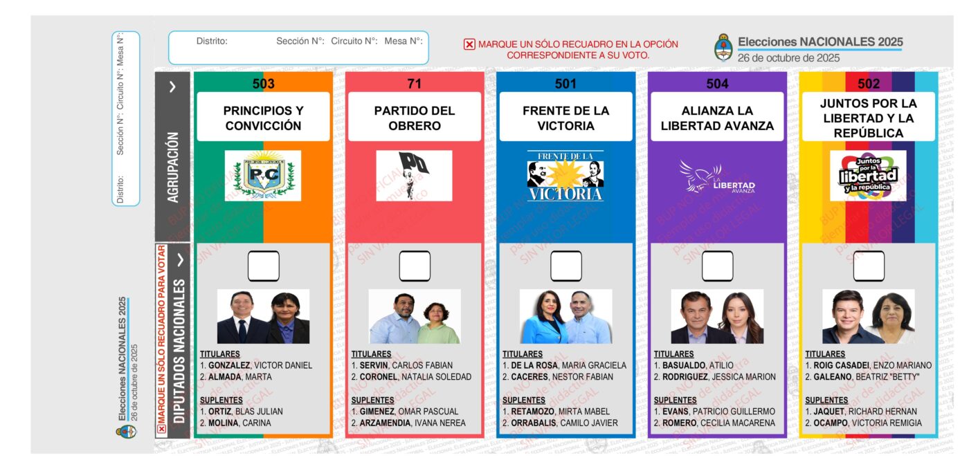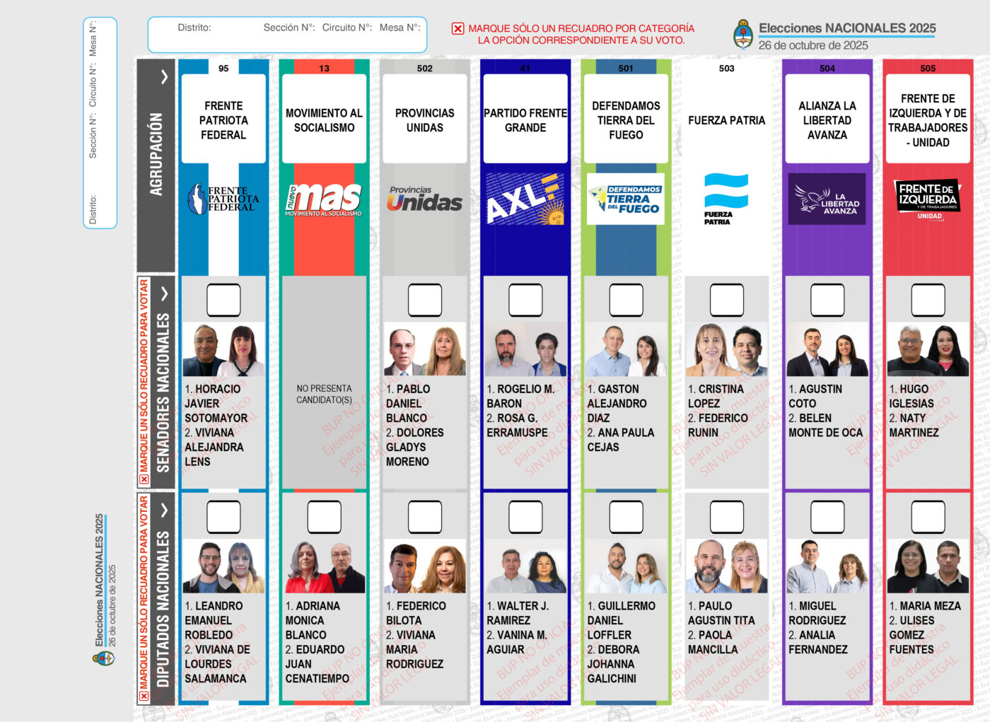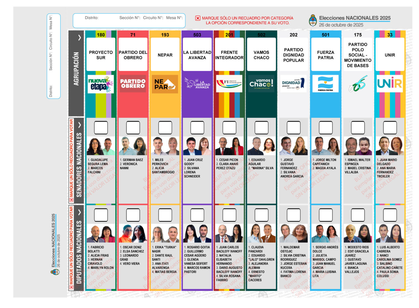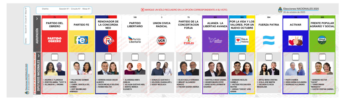 Todas las BUP (Boletas únicas de papel) del país para las elecciones del 26 de Octubre 2025