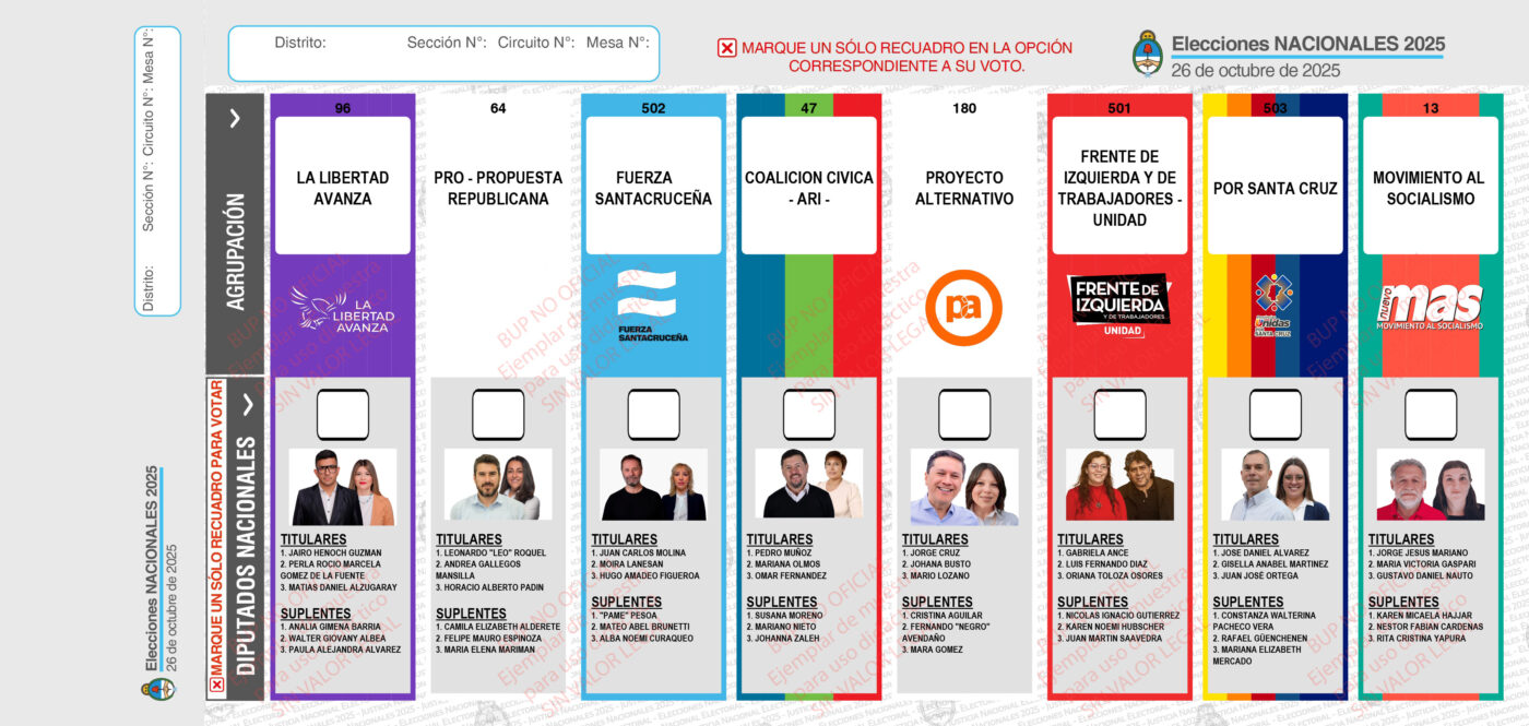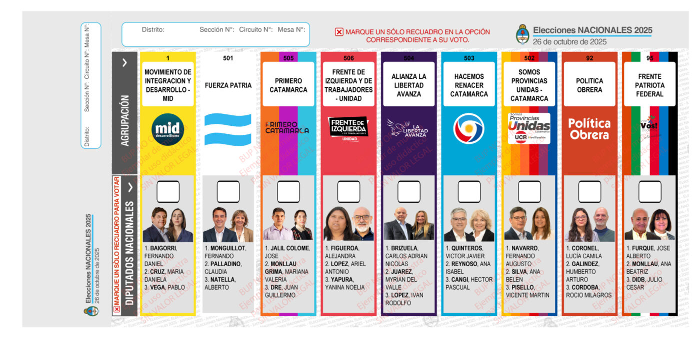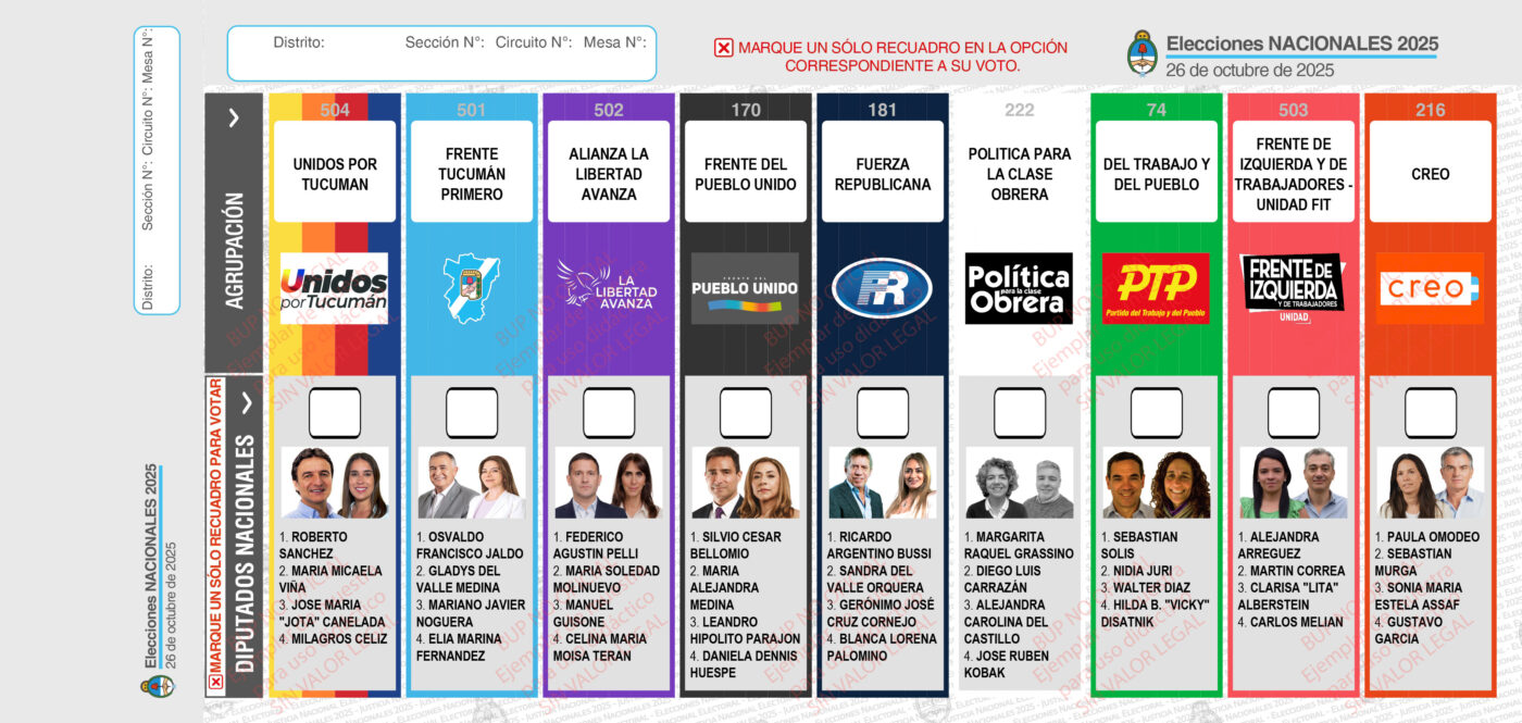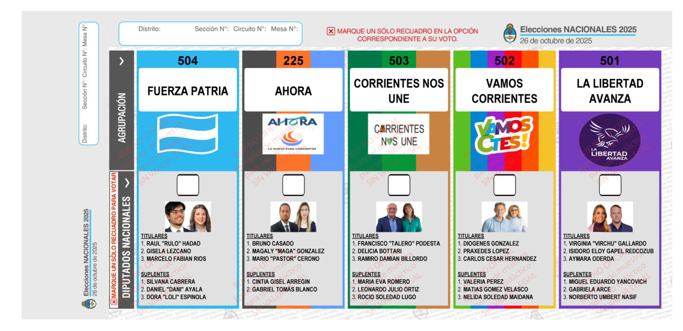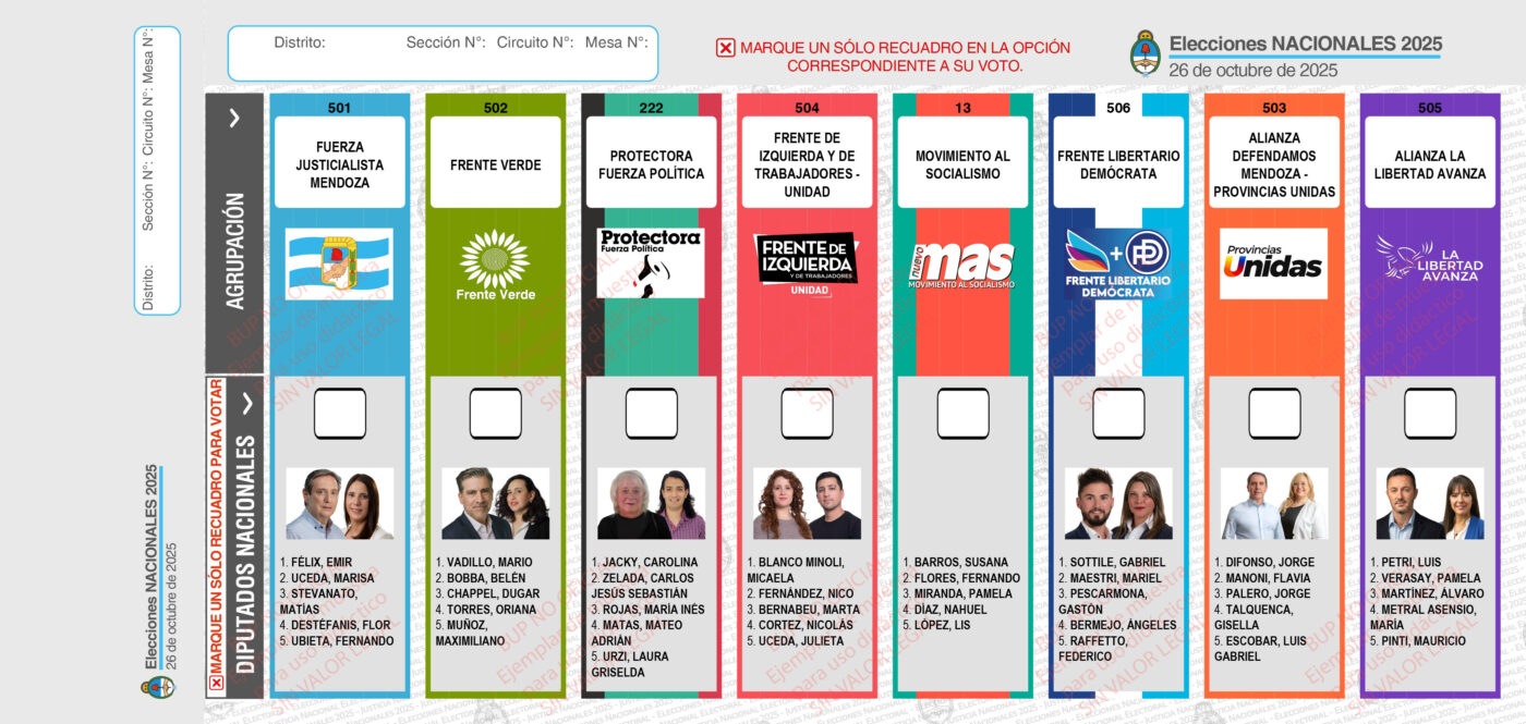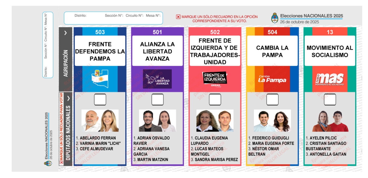Todas las BUP (Boletas únicas de papel) del país para las elecciones del 26 de Octubre 2025