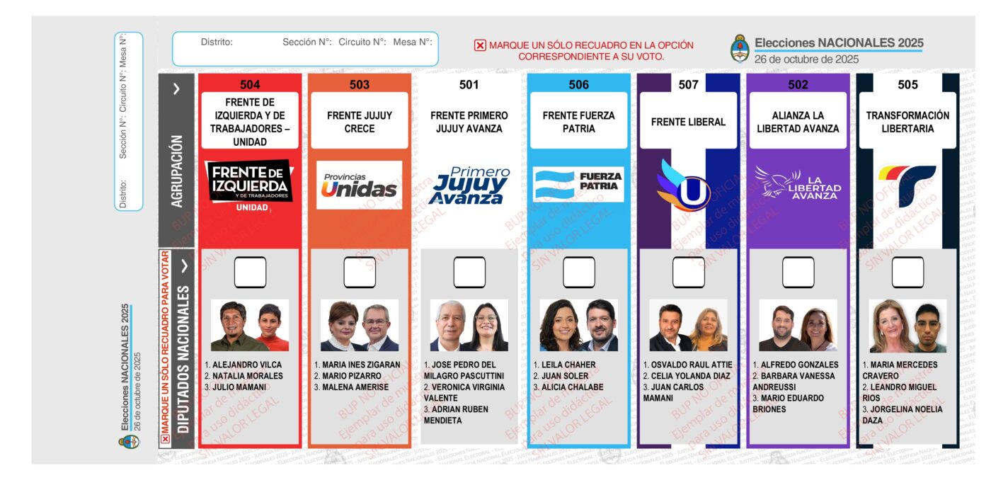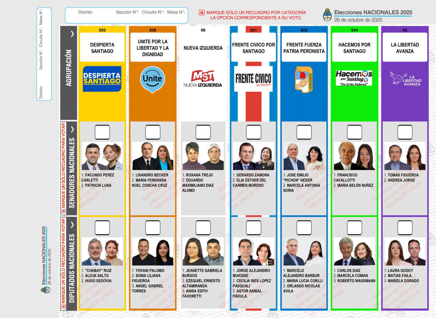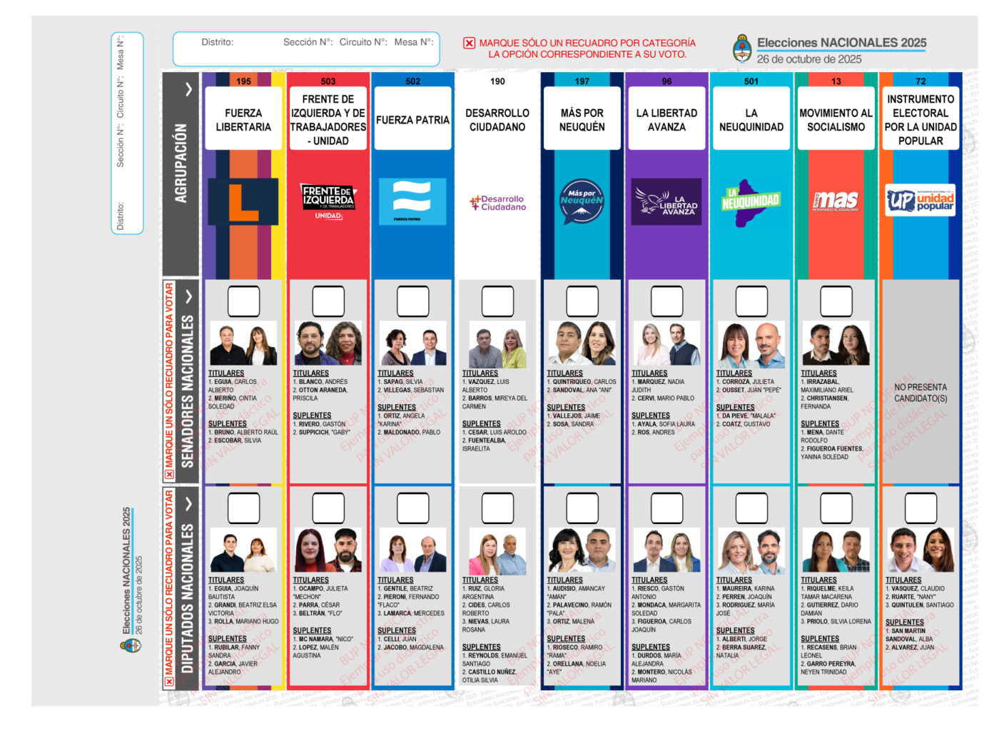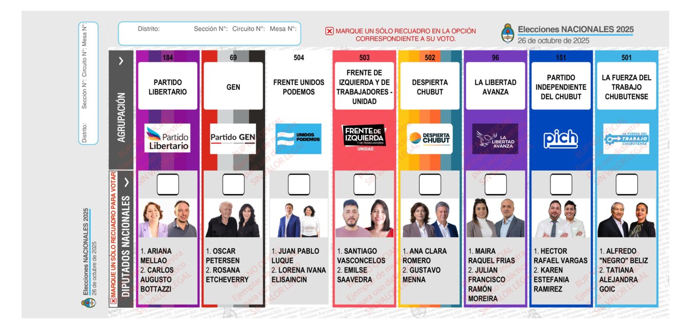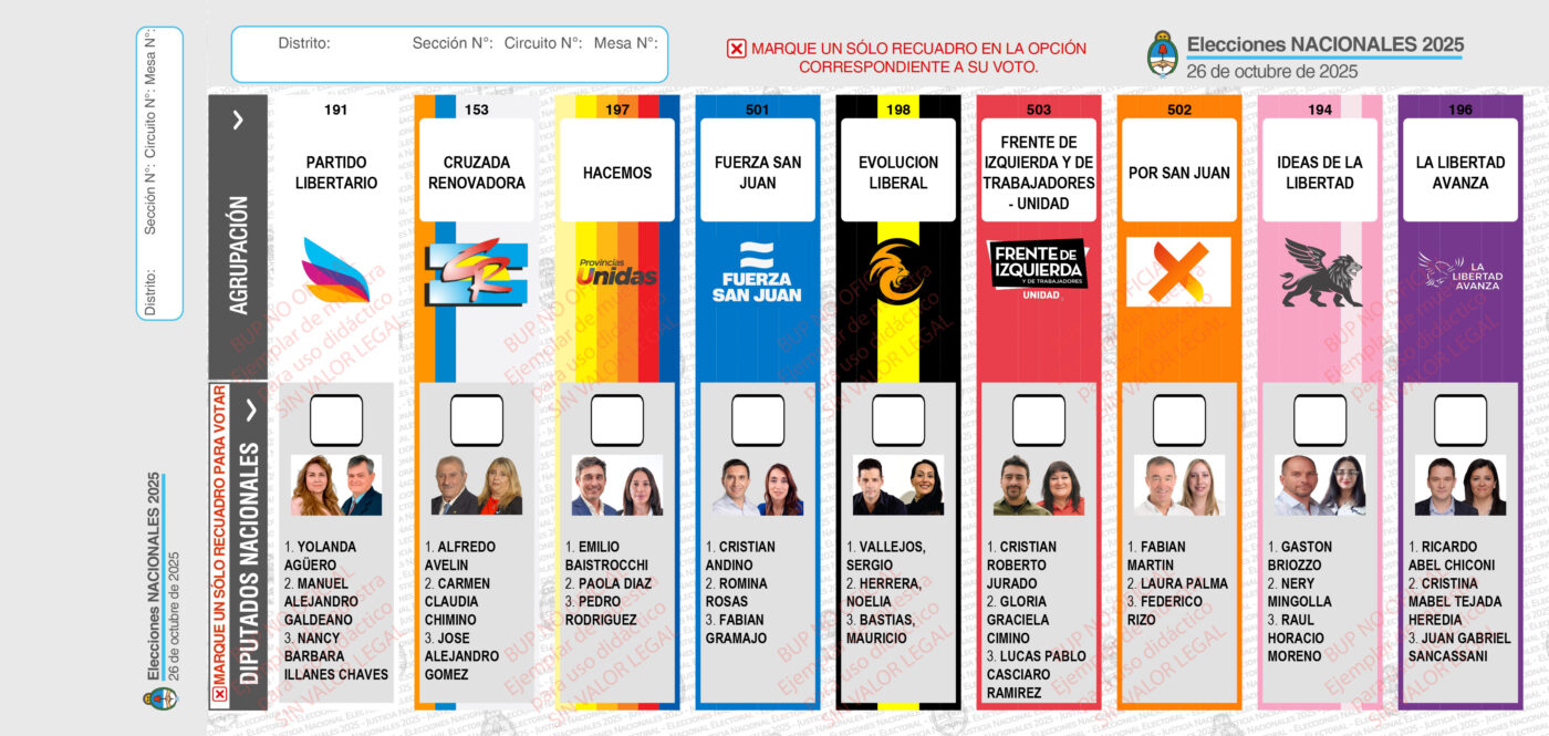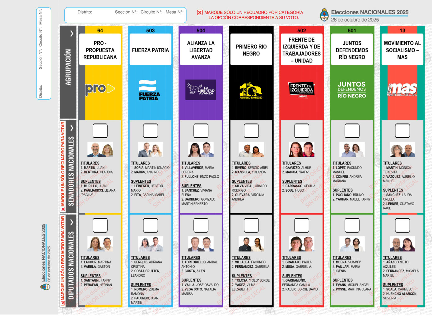 Todas las BUP (Boletas únicas de papel) del país para las elecciones del 26 de Octubre 2025